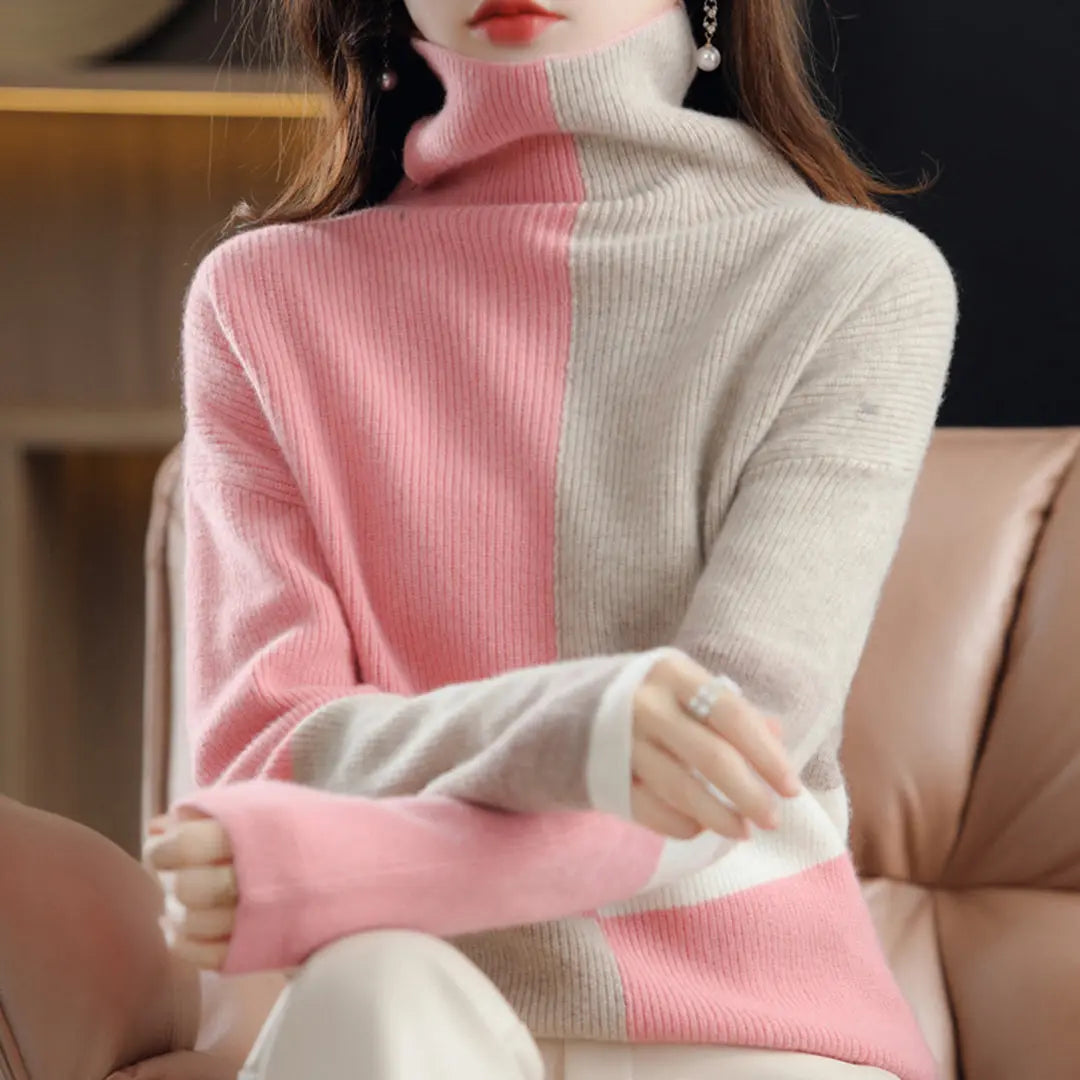 Coltrui Hoge Hals Gebreide Trui Stijlvolle Geometrische Pullover Dames